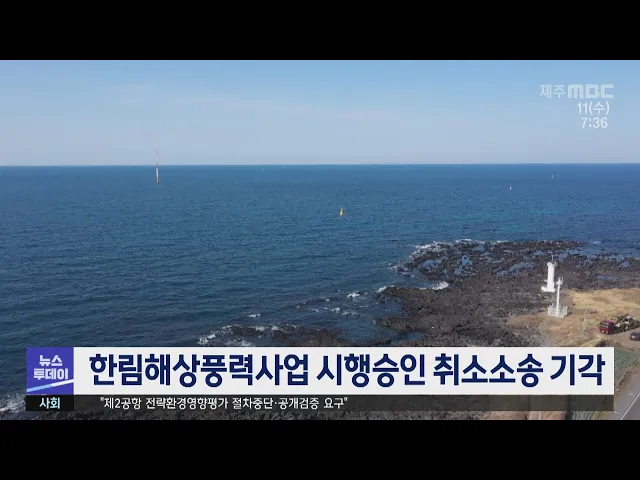 제주지방법원 행정1부는 제주시 한림읍 주민 30여 명이 제주도를 상대로 낸 한림해상풍력 개발사업 시행승인처분 취소 소송에서 원고들의 청구를 기각했습니다. 주민들은 지난 2020년 8월, 제주도가 한림읍 앞바다 546만 제곱미터에 풍력발전기 18기를 건설하는 사업을 허가하자, 의견을 제대로 수렴하지 않았다며 소송을 ...