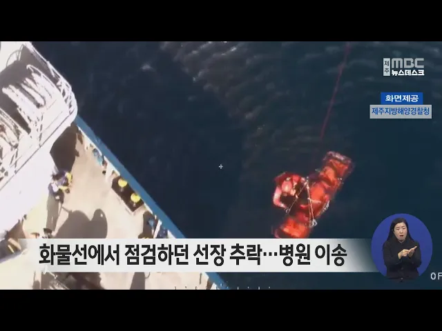 어제 오전 10시 반쯤 제주시 우도면 북쪽 17km 해상에서 파나마 선적 4천300톤급 냉장 화물선에서 구명보트를 점검하던 선장이 3m 갑판 아래로 추락했습니다. 이 사고로 70대 선장이 다쳐 출동한 해경 헬리콥터로 병원에 이송됐습니다. 해경은 화물선 관계자 등을 상대로 정확한 사고 경위를 조사하고 있습니다.