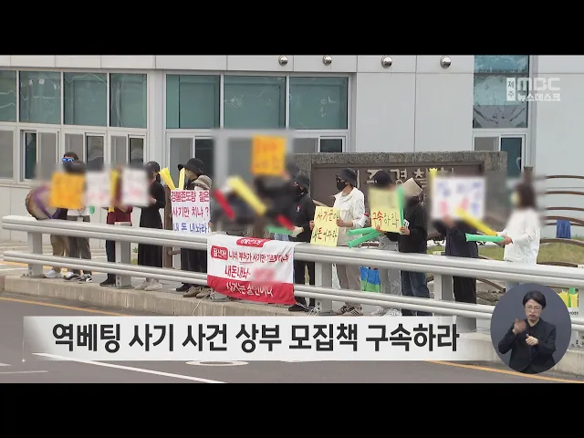 전국적으로 확산한 스포츠 역베팅 게임 다단계 사기 사건과 관련해 제주지역 피해자들이 경찰 수사를 촉구하는 집회를 열었습니다. 게임에 참여했던 30여 명은 오늘 오전 제주경찰청 앞에서 집회를 열고 구속된 제주센터장 2명 외에 자신들을 회원으로 모집한 또 다른 상부 모집책을 구속하라고 촉구했습니다. 이들은 제...