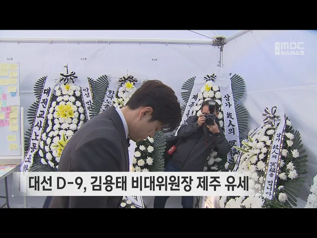제21대 대통령 선거가 9일 앞으로 다가온 가운데 국민의힘 김용태 비대위원장이 제주를 찾아 지원유세에 나섰습니다. 김용태 비대위원장은 오늘(25일) 저녁 제주도교육청에 마련된 분향소를 찾아 최근 도내 중학교에서 숨진 교사를 애도했습니다. 조문을 마친 김 위원장은 제주시 롯데마트 사거리에서 김승욱 제주선대위...