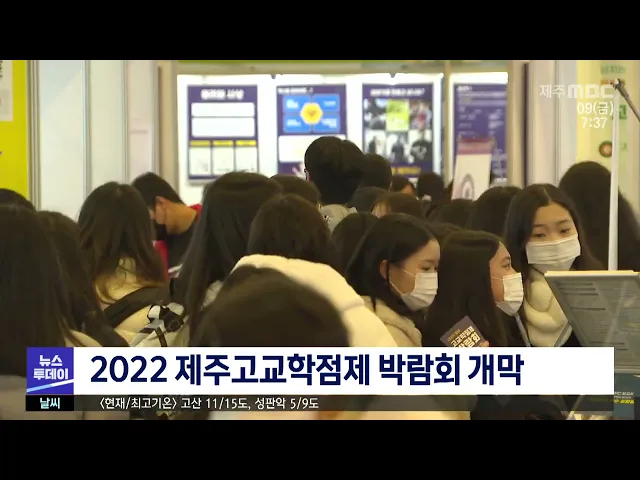 2022 제주고교학점제 박람회가 제주한라대 컨벤션센터에서 개막했습니다. 제주도교육청이 모레까지 여는 박람회에는 2025년 고교 학점제 도입을 앞두고 운영방식을 소개하는 홍보관과 선택과목을 살펴보는 부스 등이 설치됐고 도내 중학생 5천여 명이 참석할 예정입니다.