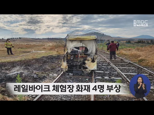 오늘 오후 3시쯤 제주시 구좌읍의 한 레일바이크 체험장에서 운행하던 전동식 레일바이크 1대에서 불이 났습니다. 이 화재로 레일바이크에 타고 있던 관광객 2명이 얼굴 등에 화상을 입고, 다른 2명이 연기를 흡입해 병원으로 이송됐습니다. 경찰과 소방당국은 전기배터리 과열로 불이 난 것으로 보고 정확한 화재 원인을 ...