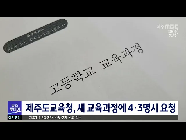 제주도교육청은 2022 개정 교육과정 성취기준 해설에 제주4·3을 명시해달라고 교육부에 요청했습니다. 교육청은 교육부가 행정예고한 2022 개정 교육과정에 '학습요소'와 '성취기준 해설'이 삭제돼 한국사 교과서 등에 4·3 기술 근거가 제외될 우려가 있어 도민 의견을 수렴해 이 같이 요청했다고 밝혔습니다.