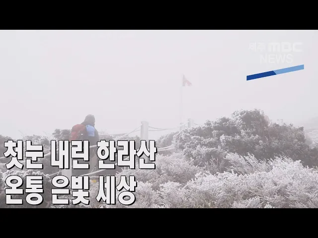 ◀ANC▶ 오늘 기온이 크게 떨어지면서 많이 추우셨죠. 하루 만에 계절이 가을에서 겨울로 변한 것처럼 느껴질 정도였는데요. 올 겨울, 첫 한파주의보가 내려진 한라산에는 첫눈이 내려 은빛 세상으로 변했습니다. 이따끔 기자가 다녀왔습니다. ◀END▶ ◀VCR▶ 눈바람이 몰아치는 한라산 영실 등반로. 웅장한 병풍바위...