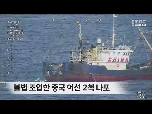 우리나라 배타적 경제수역에서 불법조업을 한 중국어선이 잇따라 해경에 나포됐습니다. 서귀포해경은 어제 오전 10시 반쯤 차귀도 서쪽 111km해상에서 214톤급 중국 어선 1척을 불법 조업혐의로 나포했습니다. 또, 오늘 오전 11시 반쯤 차귀도 서쪽 157km 해상에서도 218톤급 중국 어선 1척을 나포해 조사하고 있습니다.