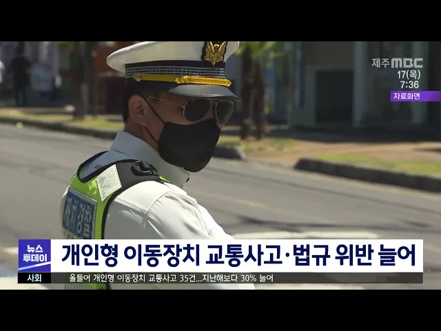 전동킥보드 등 개인형 이동장치가 늘면서 교통사고와 법규 위반도 늘었습니다. 제주자치경찰위원회에 따르면 올들어 개인형 이동장치로 인한 교통사고 35건이 발생해 지난해의 27건보다 30% 늘었고 37명이 다쳤습니다. 또, 안전모 미착용과 무면허, 음주운전 등 천 330건의 교통법규 위반행위가 적발됐습니다.