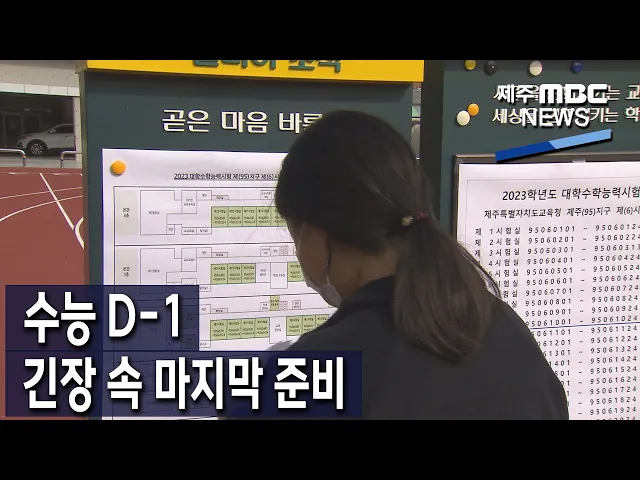 ◀ANC▶ 내일 대입 수능시험을 앞두고 제주지역에서도 수험생 예비소집이 진행됐는데요. 올해도 코로나19 때문에 방역이 강화된 가운데 시험을 치르게 됐습니다. 이따끔 기자입니다. ◀END▶ ◀VCR▶ 수능 하루 전 예비소집일. 도란도란 모여 앉은 학생들이 시험 안내사항을 귀기울여 듣습니다. ◀SYN▶고현옥 중앙여...