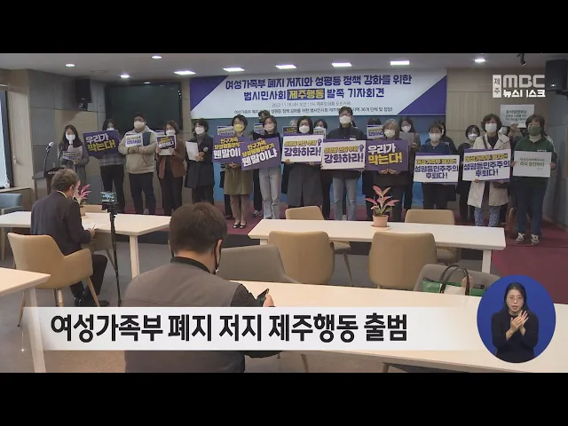 제주지역 시민단체 등으로 구성된 여성가족부 폐지 저지와 국가 성평등 정책 강화를 위한 제주행동이 출범했습니다. 이들은 제주도의회에서 기자회견을 열고 여성가족부를 폐지하는 정부조직 개편안이 민주적 절차 없이 졸속으로 발의됐다며, 구조적 성차별 해소를 위해 성평등 정책 전담 부처가 필요하다고 주장했습니다.