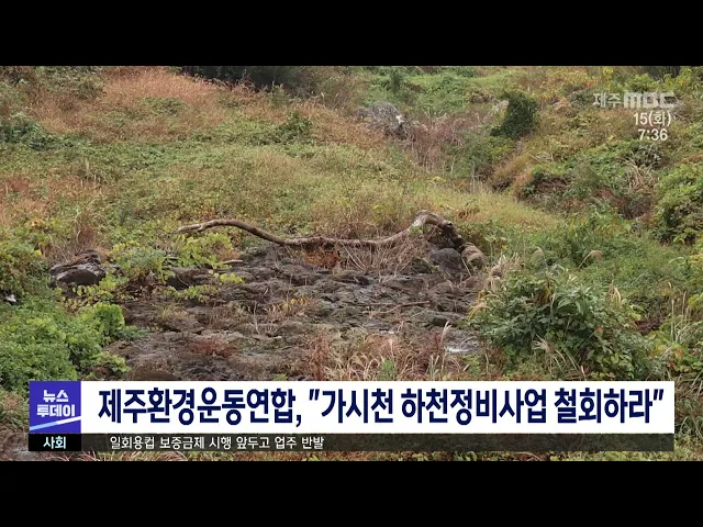 제주환경운동연합은 성명을 내고 가시천 하천정비사업 환경영향평가 동의안에 제주도의회가 부동의하라고 촉구했습니다. 이들은 제주도가 하천의 치수 안정성을 확보한다며 지난 2000년 이후 11차례나 정비공사가 이뤄졌다며, 추가 정비 공사 계획을 중단하고 근본적인 재해예방대책을 마련하라고 요구했습니다.