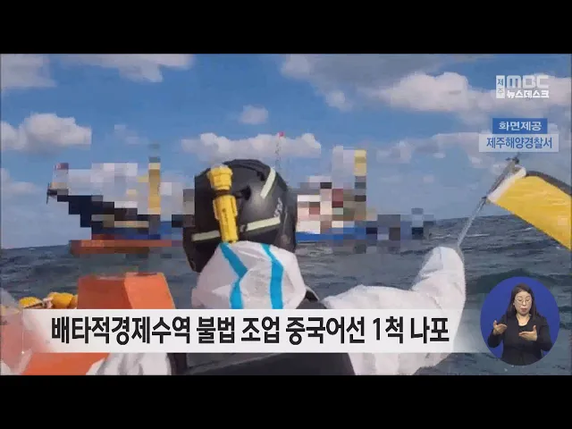 제주해양경찰서는 우리나라 배타적 경제수역에서 입출역 통보를 하지 않고 조업한 혐의로 중국어선 한 척을 나포해 벌금 4천 만 원을 부과했습니다. 이 어선은 어젯밤 11시쯤 제주시 차귀도 남서쪽 122km 해상에서 붙잡혔는데, 지난달 우리해역에 들어온 뒤 출역 내역을 신고하지 않고 어업활동을 한 혐의를 받고 있습니다...