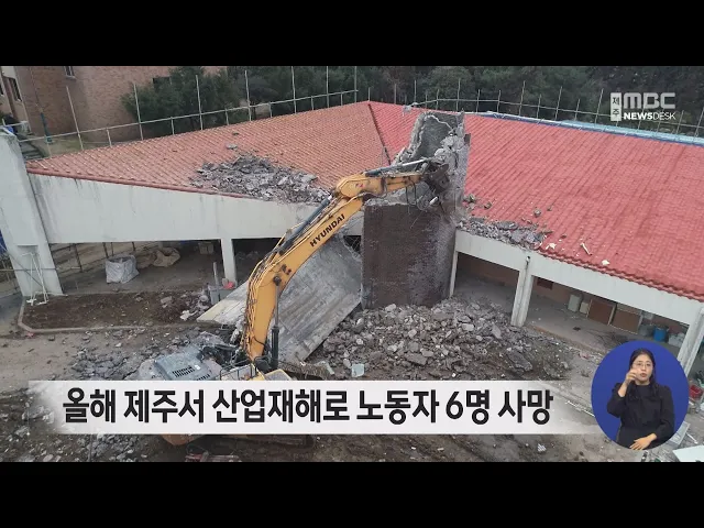 올들어 제주에서 노동자 6명이 산업재해로 숨졌습니다. 고용노동부에 따르면 올들어 지난 9월까지 제주에서 산업재해로 숨진 노동자는 6명이며, 이 가운데 제주대 기숙사 철거 현장 사고 등 5건에 대해 중대재해처벌법이 적용됐습니다. 사고 유형별로는 추락사고가 3건으로 가장 많았습니다.