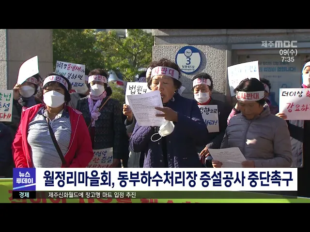 제주시 구좌읍 월정리 마을회는 동부하수처리장 증설공사 집행정지 신청에 대한 첫 공판이 열린 제주지방법원 앞에서 기자회견을 열고, 제주도에 공사를 중단하라고 요구했습니다. 이들은 지금까지 제기된 위법성과 주민 피해 문제에 대해 제주도가 세밀하게 검토해 주민들에게 공개하고 공사를 중단하라고 촉구했습니다.