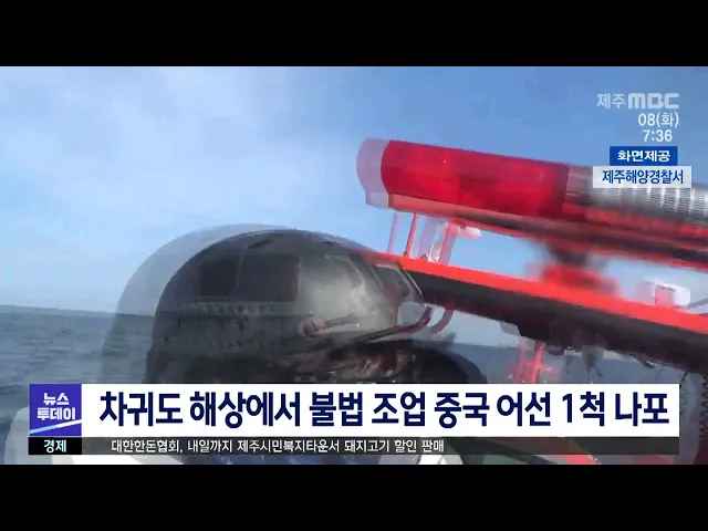 서귀포해양경찰서는 우리나라 배타적 경제수역에서 입출역 내역을 허위로 통보한 혐의로 중국어선 한 척을 나포해 벌금 4천 만 원을 부과했습니다. 이 이선은 어제 오후 2시쯤, 서귀포시 마라도 남서쪽 87km 해상에서 붙잡혔는데, 지난 1월 우리수역에 들어온 뒤 입출역 내역을 4차례 허위로 통보한 혐의를 받고 있습니다....