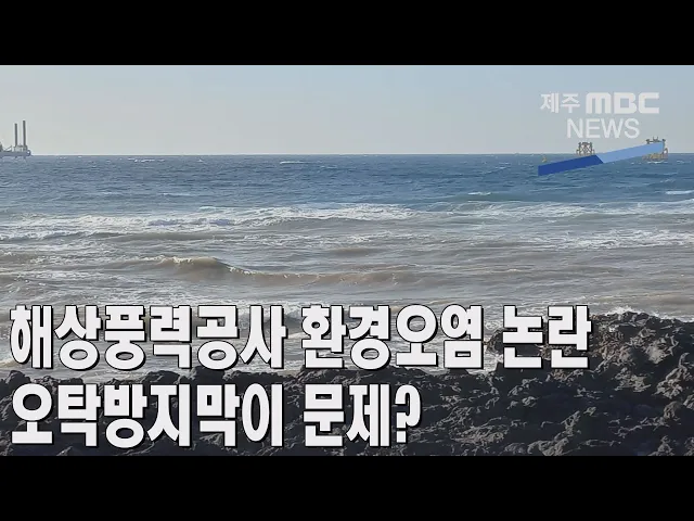 ◀ANC▶ 제주시 한림읍 앞바다에서 흙탕물이 밀려와 해상풍력발전단지 공사로 인한 환경오염이라는 논란이 일고 있는데요. MBC 취재결과 공사가 끝난 바로 다음날 오탁방지막이 제거된 것으로 확인됐는데 오탁방지막 관리에 대한 명확한 규정은 없어 논란이 커지고 있습니다. 이따끔 기자가 보도합니다. ◀END▶ ◀VCR...
