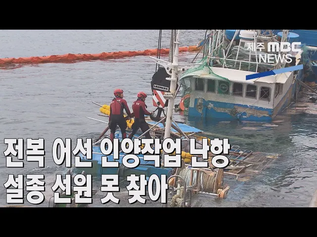 ◀ANC▶ 마라도 앞바다에서 전복된 어선사고 실종자가 여전히 발견되지 않고 있는 가운데, 선체 인양 작업이 시작됐습니다. 해경은 인양이 끝나는대로 사고 원인을 찾기 위한 합동 감식을 벌일 예정입니다. 이따끔 기자가 보도합니다. ◀END▶ ◀VCR▶ 캄캄한 밤, 민간 예인선이 밑바닥만 드러난 어선을 조심스레 예인...