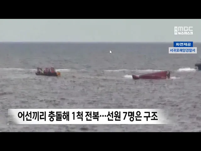 서귀포 남쪽 해상 어선 충돌해 전복...선원 7명 구조