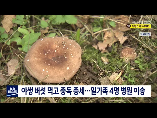 어제 저녁 8시쯤 제주시 봉개동 번영로에서 일가족 4명이 복통과 구토 등을 호소해 119에 의해 병원으로 이송됐습니다. 소방당국은 명절을 맞아 60대 부모님 집을 방문했던 20대와 30대 자녀가 함께 인근 산에서 채취한 야생 버섯을 먹고 잇따라 중독 증세를 일으킨 것으로 보고 정확한 사고 원인을 조사하고 있습니다.