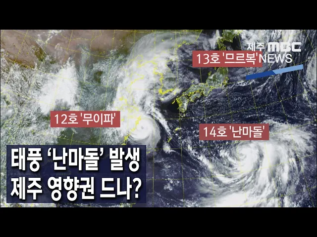 ◀ANC▶ 이달 초 제주를 강타한 태풍 힌남노에 이어 최근 태풍이 잇따라 발생하고 있는데요. 제14호 태풍 난마돌이 다음주 초 제주도 부근 바다까지 북상할 것으로 보여 제주에도 영향을 미칠지 관심이 쏠리고 있습니다. 이따끔 기자입니다. ◀END▶ ◀VCR▶ 일본 남쪽 바다에서 휘몰아치고 있는 거대한 구름덩어리 오...