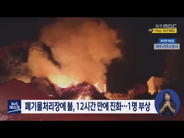 어젯밤 11시쯤 제주시 애월읍의 한 폐기물처리장에서 불이 났습니다. 이 불로 불을 끄려던 60대 업체 직원이 팔에 2도 화상을 입어 병원으로 옮겨졌고, 목재 파쇄기 등이 불에 타 소방서 추산 1억여 원의 재산피해가 났습니다. 소방당국은 인력 110명과 장비 16대를 투입해 진화에 나섰지만, 폐기물 등에 불이 옮겨붙으면...