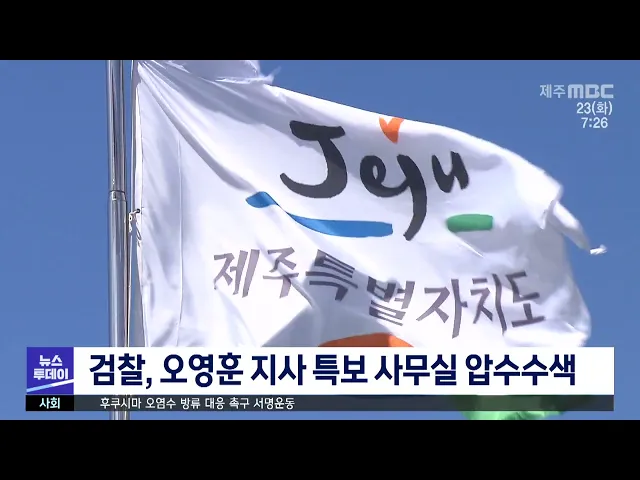 검찰이 오영훈 제주도지사의 특별보좌관 사무실을 압수수색했습니다. 제주지방검찰청은 지난 18일, 제주도청 대외협력특보 사무실을 압수수색해 휴대전화와 컴퓨터에 저장된 파일 등을 확보한 것으로 파악됐습니다. 검찰의 이번 압수수색은 지난 6.1지방선거 과정에서 모 단체 대표가 지위를 이용해 오영훈 지사의 선거 운...