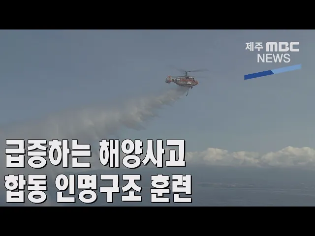 ◀ANC▶ 최근 늘어나는 해양사고에 대비해 제주 앞바다에서 대규모 인명구조 훈련이 펼쳐졌습니다. 유람선과 어선이 충돌해 화재가 난 상황을 가정한 이번 훈련은 좁은 구역에서 다수의 항공기가 출동해 구조 작업을 벌이는데 중점을 두고 진행됐습니다. 이따끔 기자가 보도합니다. ◀END▶ ◀VCR▶ 선박에서 붉은 연기...