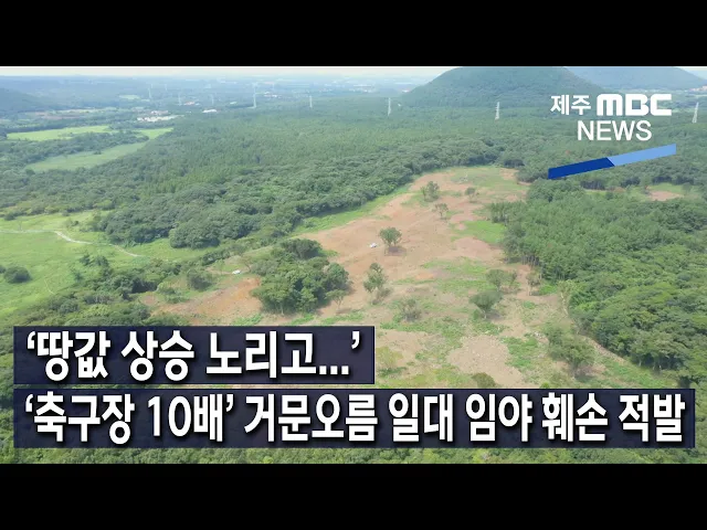 ◀ANC▶ 유네스코 세계자연유산인 거문오름 일대에 축구장 10배 크기의 임야와 목장을 불법 훼손한 일당이 구속됐습니다. 이들은 대규모로 토지를 사들여 무단 훼손한 뒤 되팔아 시세 차익을 챙기려 했던 것으로 보입니다. 이따끔 기자가 보도합니다. ◀END▶ ◀VCR▶ 유네스코 세계자연유산인 거문오름과 벵뒤굴로부터...