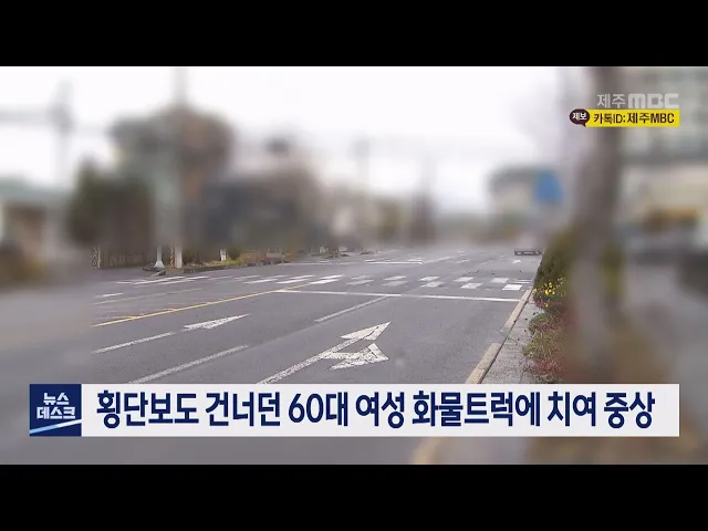 어제 아침 6시쯤 제주시 오라일동의 한 사거리에서 횡단보도를 건너던 60대 여성이 화물트럭에 치여 양쪽 다리가 크게 다치는 등 중상을 입고 119에 의해 병원으로 옮겨졌지만, 의식이 없는 것으로 알려졌습니다. 경찰은 운전자 60대 남성을 입건해 차량 블랙박스를 확보하고 정확한 사고 경위를 조사하고 있습니다.