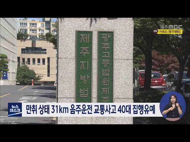 제주지방법원 강동훈 판사는 음주운전을 하다 교통사고를 낸 혐의로 기소된 43살 고 모씨에게 징역 2년 6월에 집행유예 4년을 선고했습니다. 고씨는 지난해 12월 서귀포시 안덕면에서 제주시 조천읍까지 31킬로미터를 혈중알콜농도 0.29%의 만취 상태로 운전하다 신호 대기 중이던 차량을 들이받아 운전자 2명을 다치게 한 ...