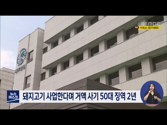 제주지방법원 제2형사부는 돼지고기 판매사업에 투자하면 수익금을 주겠다고 속여 돈을 가로챈 혐의로 기소된 53살 김 모씨에게 징역 2년을 선고했습니다. 김씨는 돈이 급한 사람들이 저렴한 가격에 급하게 판매하는 돼지고기를 사들인 뒤 되팔아 10에서 20%의 이자를 주겠다며 피해자 2명으로부터 40억원을 빌린 뒤 갚지 ...