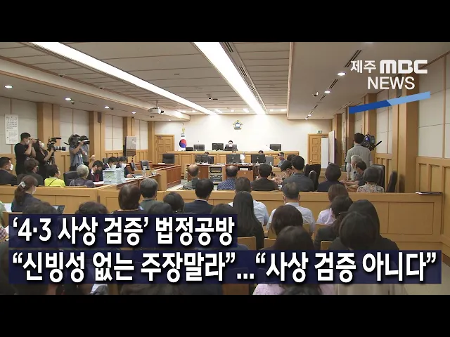 ◀ANC▶ 제주 4.3사건 특별재심을 청구한 수형인 일부의 희생자 자격에 문제가 있다며 검찰이 문제를 제기하면서 사상검증 논란이 일고 있는데요. 결국, 4.3 진상조사에 참여했던 전문가가 법정에 출석해 문제가 없다며 증언을 하는 일까지 벌어졌고 검찰은 사상검증을 할 생각은 없었다고 뒤늦게 해명했습니다. 이따끔 ...