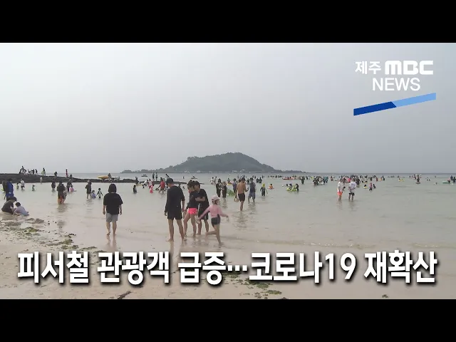 ◀ANC▶ 장마가 막바지로 접어들고 본격적인 피서철이 시작되면서 제주를 찾는 관광객들이 늘어나고 있는데요. 코로나19 확진자도 빠르게 늘어나면서 방역당국이 긴장하고 있습니다. 이따끔 기자입니다. ◀END▶ ◀VCR▶ 맑고 푸른 바닷물과 은빛 백사장으로 이름난 제주의 한 해수욕장 시원한 바닷물에 뛰어들어 무더...