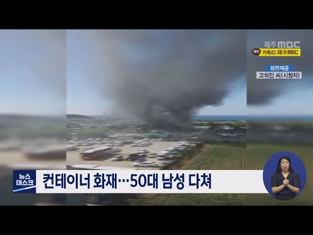 오늘 오후 3시 50분쯤 제주시 도두이동의 한 컨테이너에서 불이 나 20여 분 만에 진화됐습니다. 이 불로 50대 남성 1명이 불을 끄다 팔에 화상을 입고 컨테이너 1동과 근처에 있던 버스 1대가 불에 탔고 연기가 심하게 나면서 놀란 주민들의 신고가 잇따랐습니다. 소방당국은 정확한 피해규모와 함께 화재 원인을 조사하고...