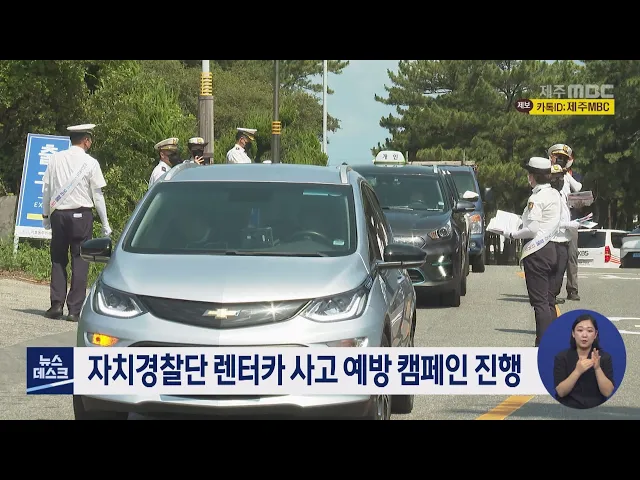 제주도 자치경찰단은 최근 렌터카 사고가 급증함에 따라 제주시 이호해수욕장 일대에서 렌터카 사고 예방을 위한 전단지를 배포하고 안전운전을 당부하는 캠페인을 진행했습니다. 경찰에 따르면 최근 5년 동안 제주에서 발생한 렌터카 사고는 2천 700여 건으로 전체 교통사고의 13%이며, 올들어 5명이 숨지고 464명이 다쳤...