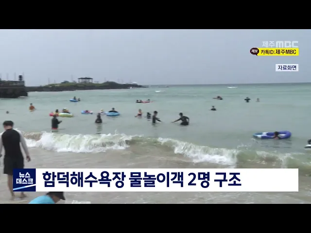 어제 오후 5시쯤 제주시 함덕해수욕장 인근 서쪽 해상에서 튜브를 타고 물놀이를 하던 관광객 2명이 물에 빠졌다가 구조됐습니다. 이들은 구조된 후 제주시내 병원으로 이송됐는데, 40대 여성은 구조 당시 의식이 양호했고 의식을 잃었던 60대 남성도 의식을 되찾은 것으로 확인됐습니다.