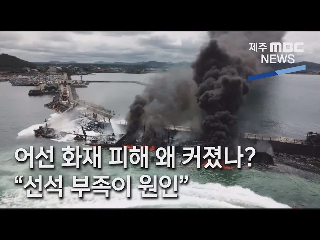 ◀ANC▶ 서귀포시 성산항에서 발생한 어선 화재의 원인을 밝혀내기 위한 조사가 본격적으로 시작됐습니다. 이번 화재로 30억원에 가까운 피해가 발생한 것으로 추산되고 있는데 좁은 항구 안에 선박을 겹겹이 세우는 바람에 피해가 커졌다는 지적이 나오고 있습니다. 이따끔 기자입니다. ◀END▶ ◀VCR▶ 시커멓게 타버...