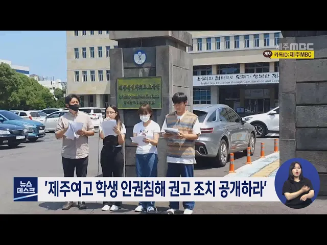 제주여고 졸업생인 전 학생회장 김채은 씨와 제주평화인권연구소 왓 등은 제주도교육청 앞에서 기자회견을 열고, 제주여고 일부 교사들의 학생 인권침해와 관련해 가해교사와 책임자에게 분명한 책임을 묻지 못했다며 실질적인 인권보장 조치를 취하라고 요구했습니다. 또 이들은 제주도교육청이 제주여고에 권고한 조치 결...