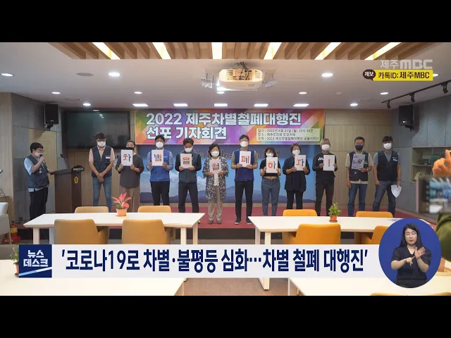 제주차별철폐대행진 공동기획단은 도의회에서 기자회견을 열고, 평등한 제주사회 건설을 위해 차별철폐대행진을 선포한다고 밝혔습니다. 이들은 코로나19로 사회적 차별과 불평등이 더 심화했다며 여성과 장애인, 성소수자들의 평등을 위해 결의대회와 영화제 등을 개최하는 등 차별철폐대행진을 이어가겠다고 밝혔습니다.