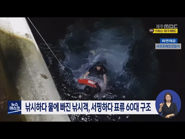 어젯밤 10시 반쯤 서귀포항 6부두 인근 해상에서 낚시를 하던 20대 중국인 남성이 방지턱에 걸려 넘어져 바다에 빠졌다가 출동한 해경에 구조됐습니다. 또 어제 오후 5시 반쯤에는 서귀포시 안덕면 형제섬 인근 바다에서 서핑하던 60대가 파도에 휩쓸려 표류하다 해경에 구조됐습니다.
