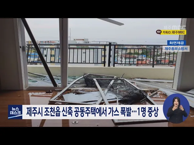 오늘 오후 3시 반쯤 제주시 조천읍의 한 7층 짜리 신축 공동주택 7층에서 가스 폭발 사고가 발생했습니다. 이 사고로 입주 전 가스 점검을 하던 52살 A씨가 온 몸에 화상을 입어 병원으로 옮겨졌고, 폭발 충격으로 유리창이 깨졌습니다. 경찰과 소방당국은 작업자 등을 상대로 정확한 사고 경위를 조사하고 있습니다.