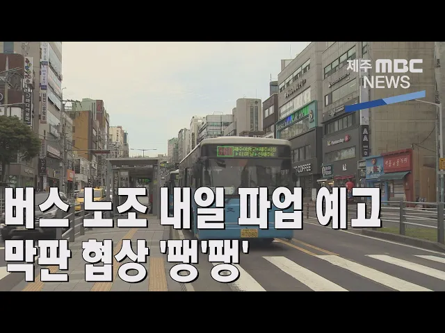 ◀ANC▶ 코로나19로 지난 2년 동안 임금이 동결된 버스 노조가 임금 인상 등을 요구하며 내일부터 파업을 예고했는데요, 노사가 막판 협상을 벌이고 있습니다. 이따끔 기자가 보도합니다. ◀END▶ ◀VCR▶ 제주지방노동위원회 회의장에 버스 노조 대표들과 버스업체, 제주도 관계자들이 들어섭니다. 앞서 2차례 협상이 ...