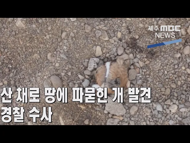 ◀ANC▶ 산채로 땅에 파묻힌 개가 극적으로 구조되는 일이 벌어졌습니다. 등록된 칩을 통해 확인된 주인은 며칠 전 개를 잃어버렸다고 진술했는데, 경찰이 용의자 추적에 나섰습니다. 이따끔 기자입니다. ◀END▶ ◀VCR▶ 제주시 내도동의 하천 옆 자갈밭. 개 한 마리가 코만 나온 상태로 묻혀있습니다. 묻힌 땅 위에는 ...
