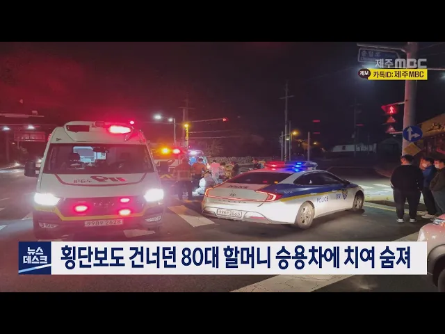 어제 저녁 8시 반쯤 제주시 구좌읍 세화리의 한 교차로에서 횡단보도를 건너던 80대 할머니가 승용차에 치여 숨졌습니다. 경찰은 CCTV를 확인한 결과 할머니가 횡단보도를 건너던 중 빨간불로 바뀌었고 승용차 운전자가 할머니를 미처 발견하지 못해 사고가 난 것으로 보고 정확한 사고원인을 조사하고 있습니다.