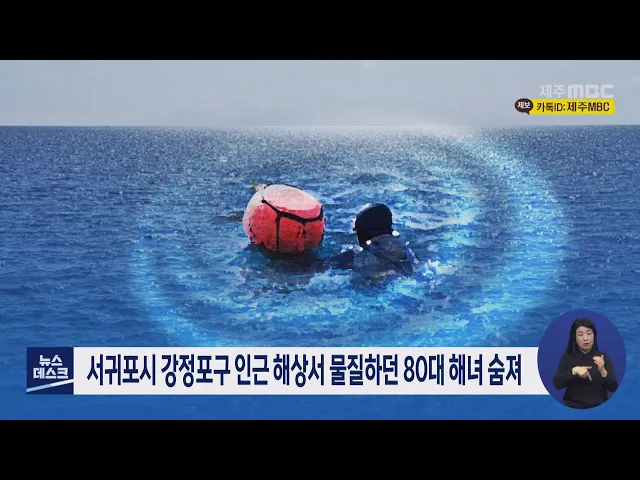 오늘 오전 10시 반쯤 서귀포시 강정포구 인근 해상에서 물질을 하던 80대 해녀 A씨가 실종됐다는 신고가 119에 접수됐습니다. A씨는 강정포구 서쪽 800미터 해상에서 어촌계 선박에 심정지 상태로 발견돼 병원으로 옮겨졌지만 숨졌습니다.