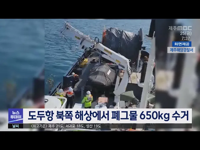 제주해양경찰서는 오늘(어제) 도두항 북쪽 2킬로미터 해상에 떠 있는 폐그물 650킬로그램을 수거해 선박 추진기 감김 사고를 예방했다고 밝혔습니다. 해경에 따르면 최근 3년 동안 제주 관내 해상에서 부유물 감김에 의한 선박 사고 건수는 50여건이었고 3천 700킬로그램의 해상 부유 폐기물이 수거됐습니다.