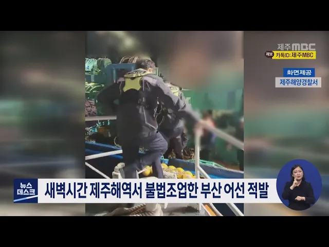 제주해양경찰서는 조업 금지 구역을 위반해 제주 근해에서 불법 조업한 부산선적 100톤급 어선 A호를 조사하고 있습니다. A호는 오늘 새벽 2시 20분쯤 어족 자원 보호를 위해 제주도 본섬 7천400미터 이내 해상에서 조업할 수 없도록 한 규정을 어기고, 애월항 북동쪽 5천미터 해상까지 진출해 고기잡이한 혐의를 받고 있습...