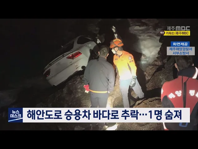 해안도로에서 승용차가 추락해 탑승자 1명이 숨지는 사고가 발생했습니다. 오늘 새벽 3시 50분쯤 제주시 애월읍의 한 해안도로에서 40대 남성 A씨가 운전하던 승용차가 바다에 빠져 차량에 함께 타고 있던 80대 여성 B씨가 숨졌습니다. 사고 당시 차량에서 빠져 나온 A씨는 가슴 등을 다쳐 병원으로 이송됐으나 생명에는 지...