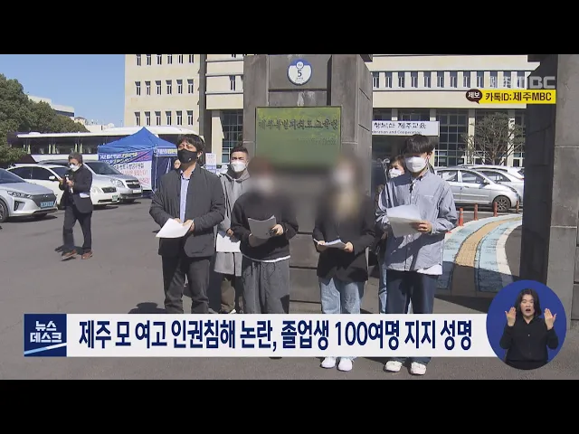 제주 모 여자 고등학교의 인권침해 논란과 관련해 해당 여고 졸업생 100여 명은 성명을 통해 학내 인권침해 실태를 공론화한 학생들을 지지한다고 밝혔습니다. 이들은 올해 졸업생들이 학내 인권침해 실태를 밝힌 것은 모교의 발전을 위한 용기 있는 행동이라며, 학교장의 즉각적인 사과를 요구하고 교육청은 성추행 의혹 ...