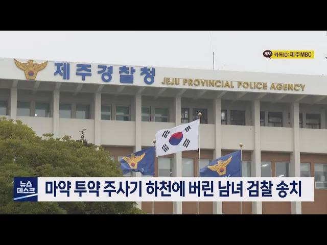 제주경찰청은 마약을 투약한 뒤 제주시 노형동의 한 하천에 필로폰 주사기 수십개를 버린 30대 여성 A씨와 40대 조직폭력배 B씨를 마약류 관리에 관한 법률 위반 혐의 등으로 구속 송치했습니다. 경찰은 정확한 사건 경위를 파악하는 한편, 필로폰을 제공한 전달책 등을 파악하기 위해 수사를 확대하고 있습니다.