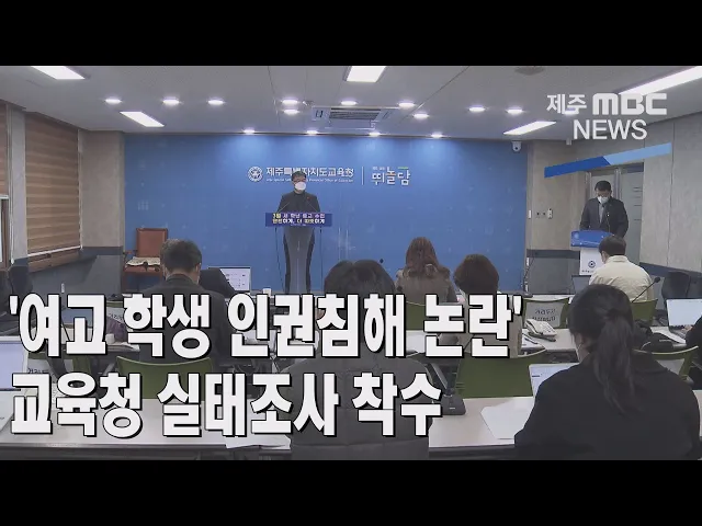 ◀ANC▶ 최근 제주의 한 여자고등학교에서 교사들이 학생들에게 폭언을 하고 성추행했다는 주장이 제기돼 논란이 일고 있는데요, 제주도교육청이 진정서 접수 6일 만에 후속조치에 나섰습니다. 이따끔 기자입니다. ◀END▶ ◀VCR▶ 고교 재학 3년 동안 교사들의 폭언과 성차별적 발언에 시달렸다고 밝힌 졸업생. 투명한 ...