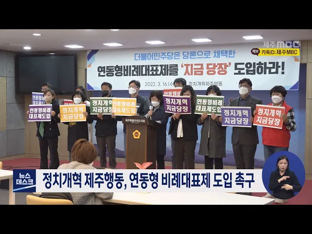 민주노총 제주본부와 주민자치연대 등 16개 단체로 구성된 정치개혁 제주행동은 제주도의회에서 기자회견을 열고, 제주 지역 더불어민주당 국회의원들이 당론으로 채택한 연동형 비례대표제를 도입하도록 제주특별법 개정에 나서라고 촉구했습니다. 또 이들은 올해 지방선거 도지사 선거에서 결선투표제를 도입하고, 도의...